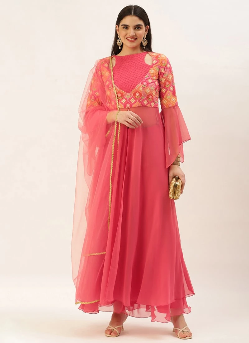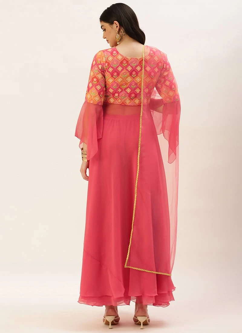 Teen Girls Multicolored Georgette Embroidered Anarkali Suit Festive Wear