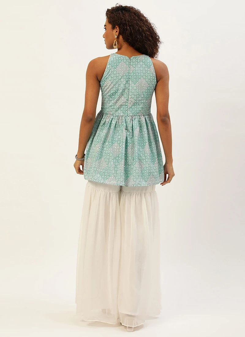 Teen Girls Multicolored Georgette Embroidered Gharara Suit Festive Wear