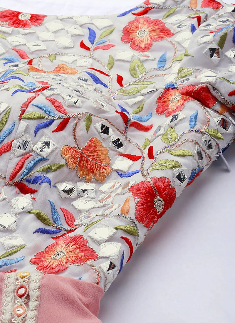 Teen Girls Multicolored Georgette Embroidered Kali Festive Wear