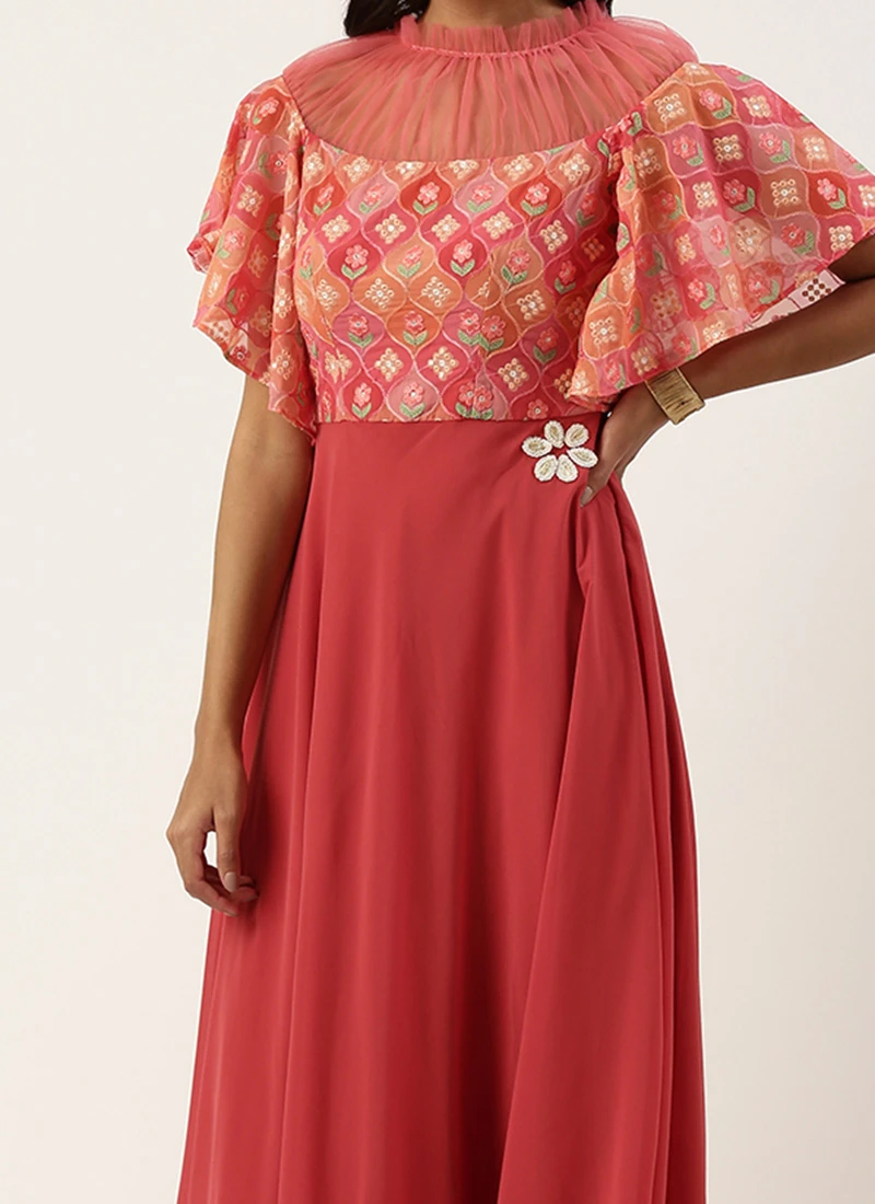 Teen Girls Multicolored N Pink Georgette Embroidered Gown Party Wear