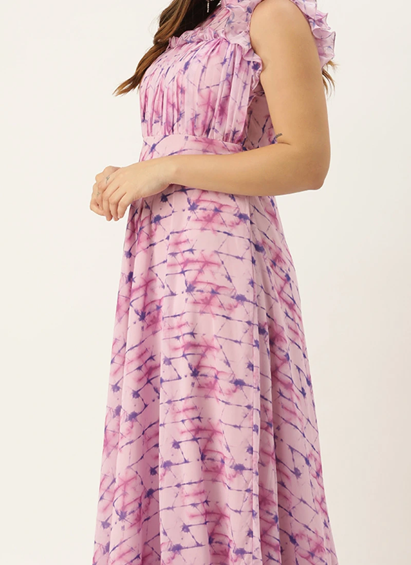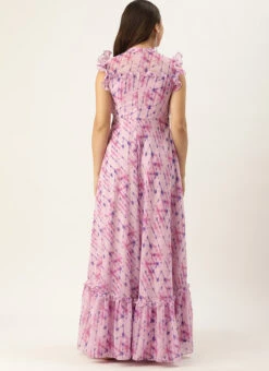 Teen Girls Multicolored Printed Georgette Gown Festive Wear