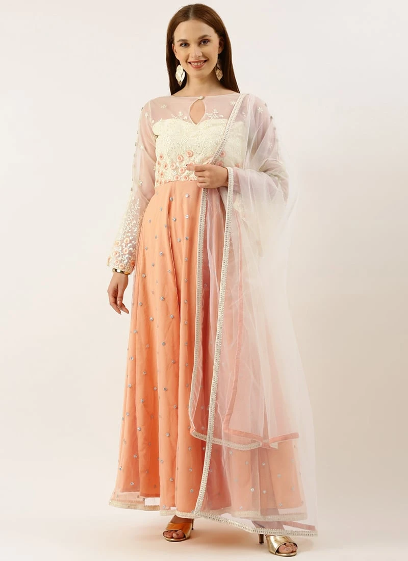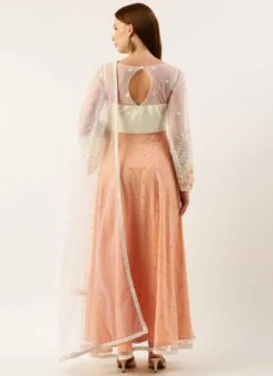 Teen Girls Off White N Peach Embroidered Anarkali Suit Festive Wear