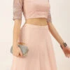 Teen Girls Peach Art Silk Jacquard Co Ords Set Festive Wear