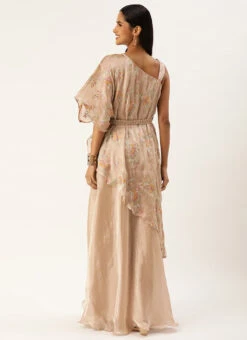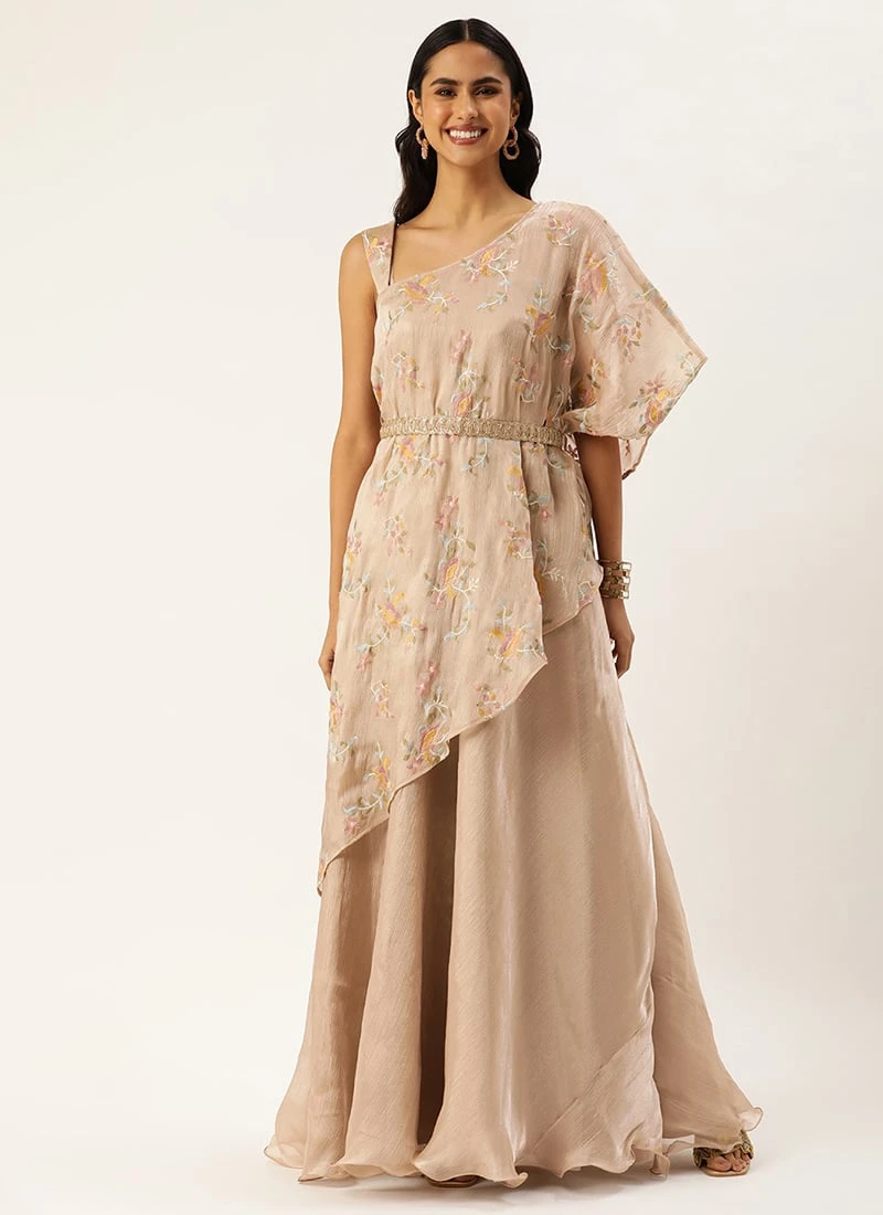 Teen Girls Peach Embroidered Jimmy Choo Cape With Gown Festive Wear