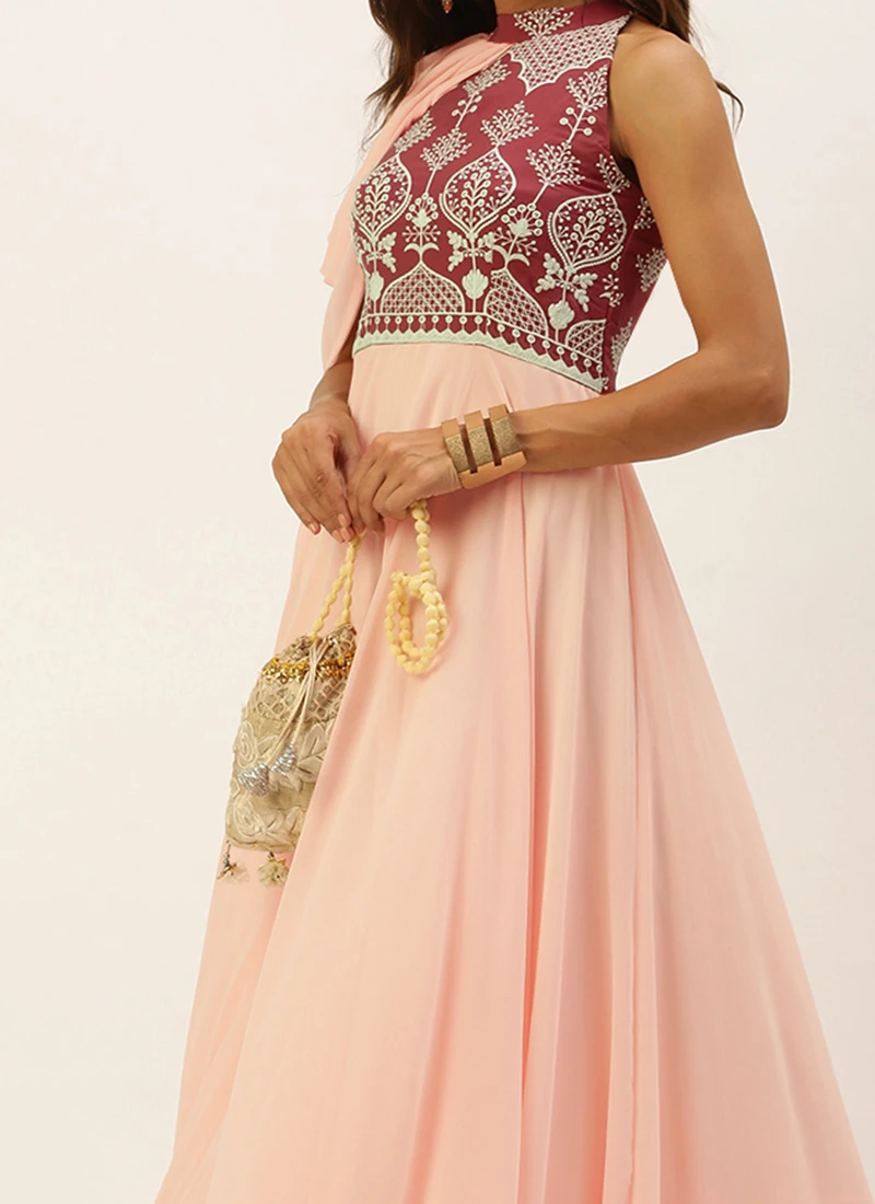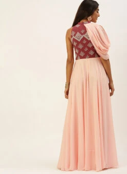 Teen Girls Peach N Mauve Halter Neck Gown Festive Wear