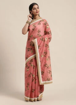 Teen Girls Pink Chanderi Saree N White Embroidered Blouse Festive Wear