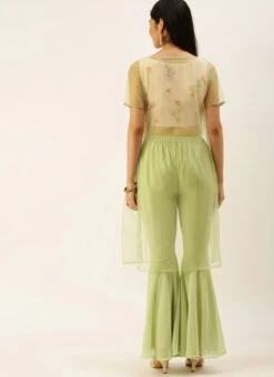 Teen Girls Pink Embroidered Crop Top N Gharara Bottom With Jacket Festive Wear