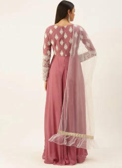Teen Girls Pink Embroidered Georgette Anarkali Suit Work Wear