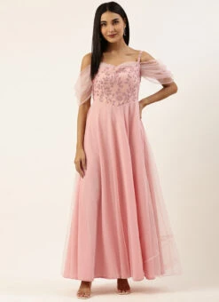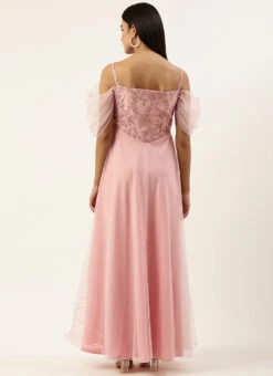 Teen Girls Pink Foil Printed Net Gown After Six Wear