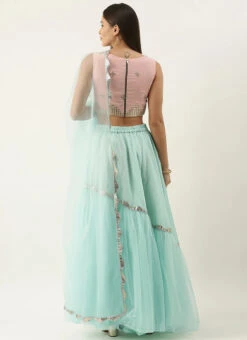 Teen Girls Pink N Blue Asymmetric Gathers Lehenga Set Festive Wear