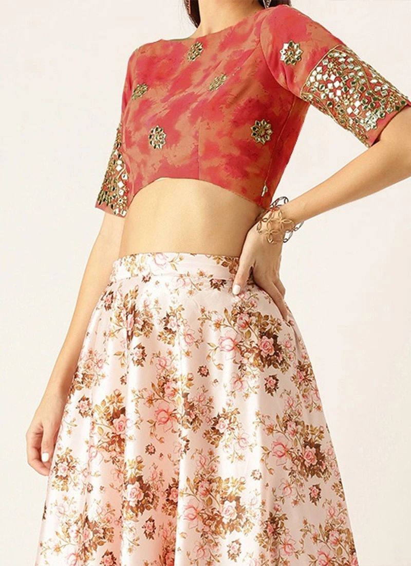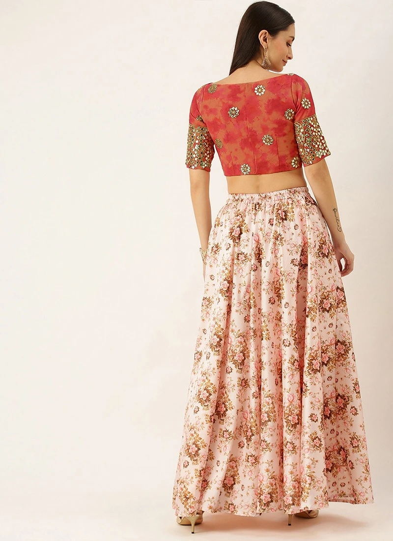 Teen Girls Pink N Red Gota Embroidered Crop Top N Skirt Festive Wear