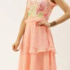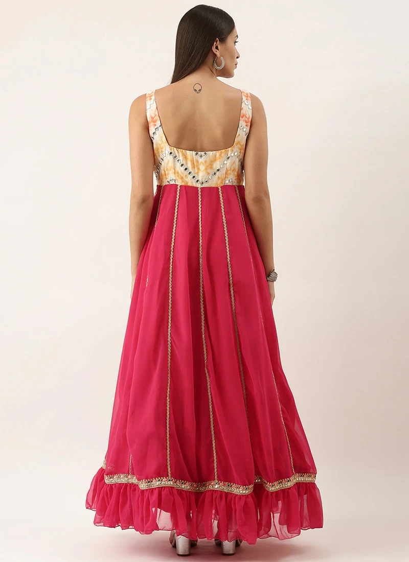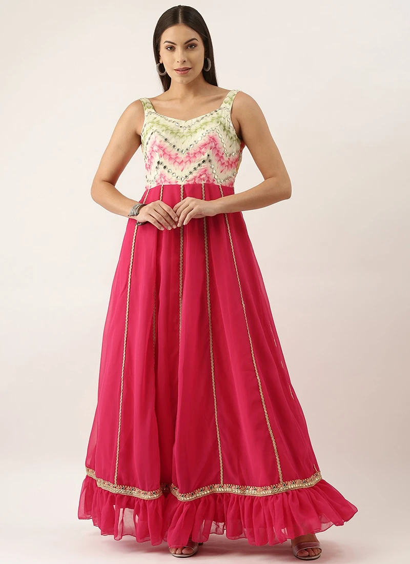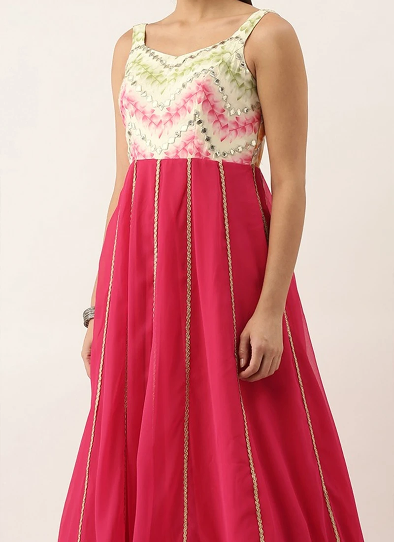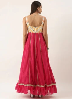 Teen Girls Pink N White Embroidered Kali Gown Festive Wear
