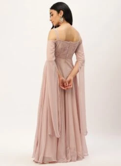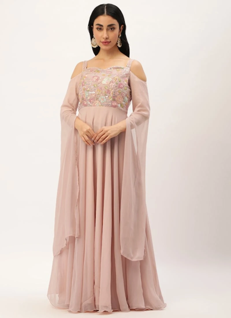 Teen Girls Pink Net Embroidered Cape Style Sleeve Gown Party Wear