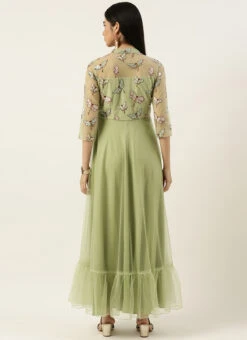 Teen Girls Pista Green Embroidered Gown Party Wear