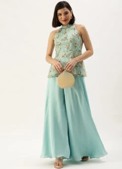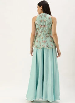 Teen Girls Pista Green Peplum Top N Sharara Set Festive Wear