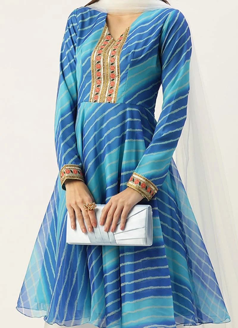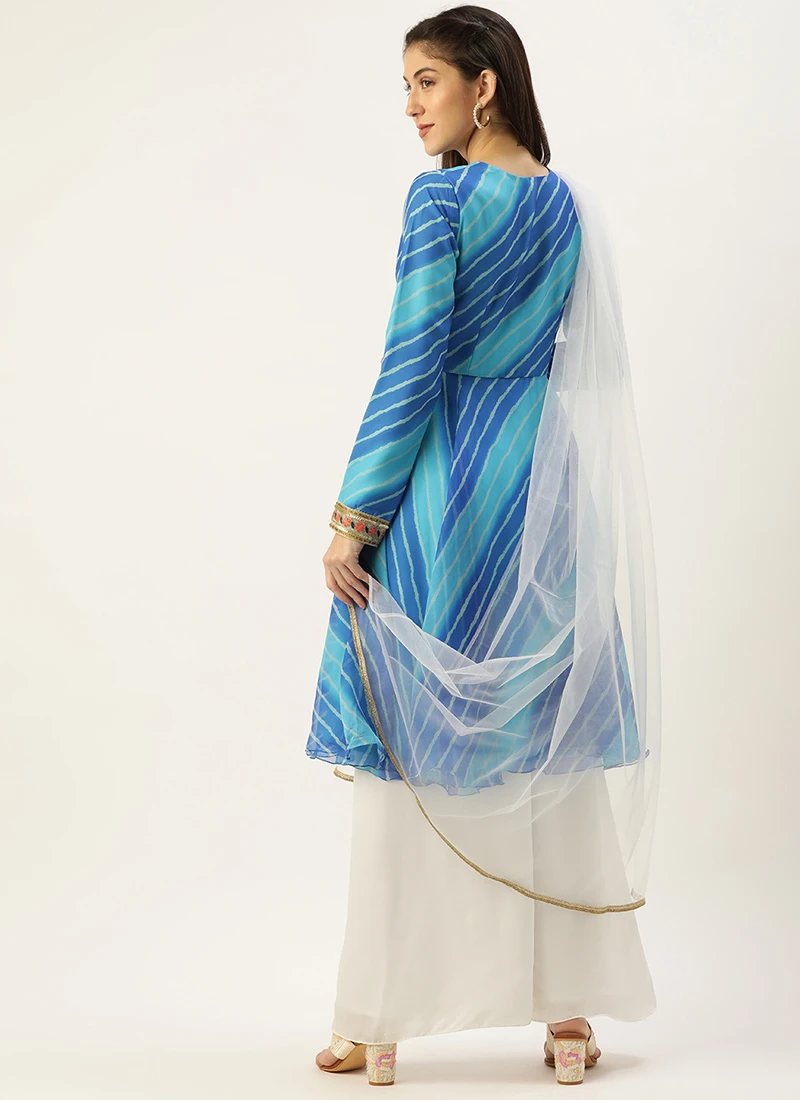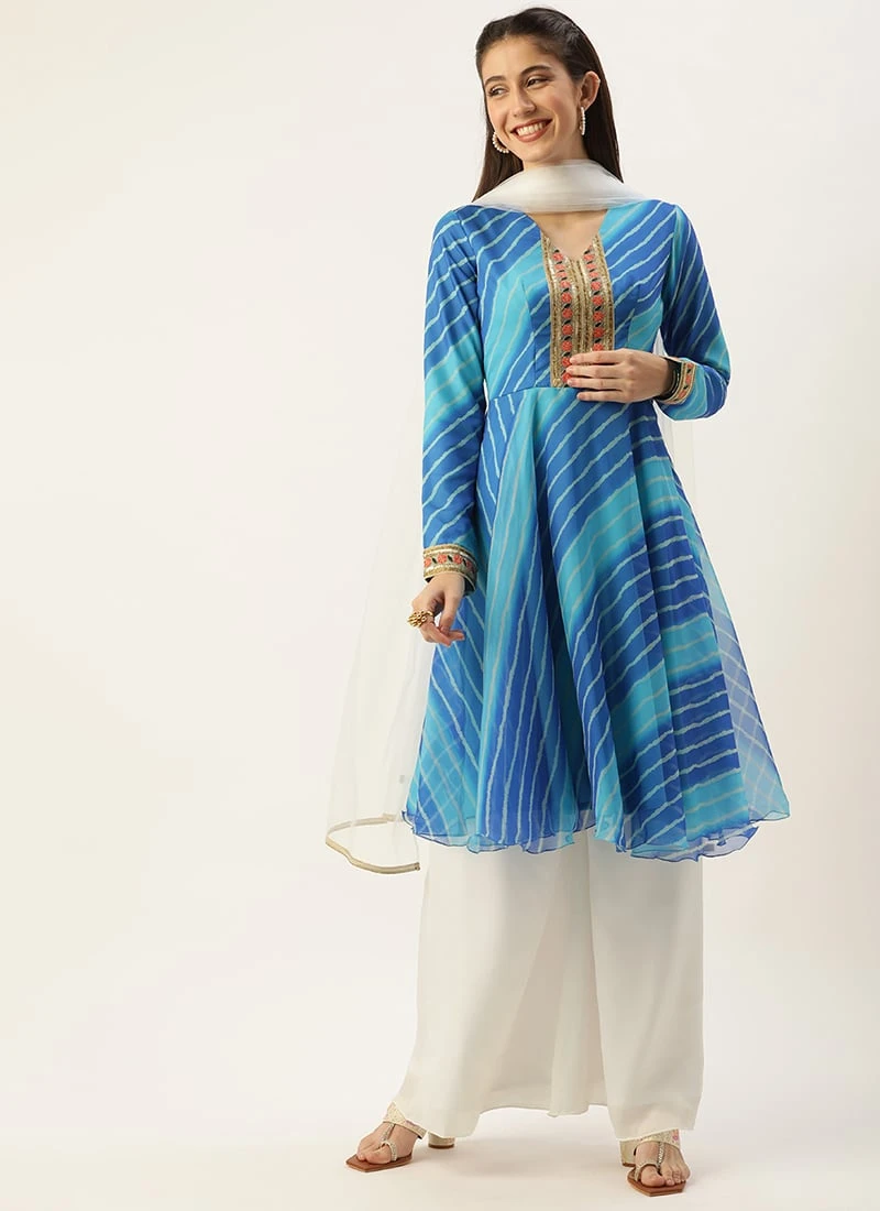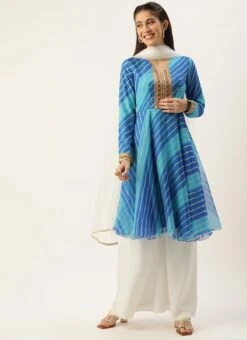 Teen Girls Presenting Blue Organza Printed Palazzo Suit Festive Wear