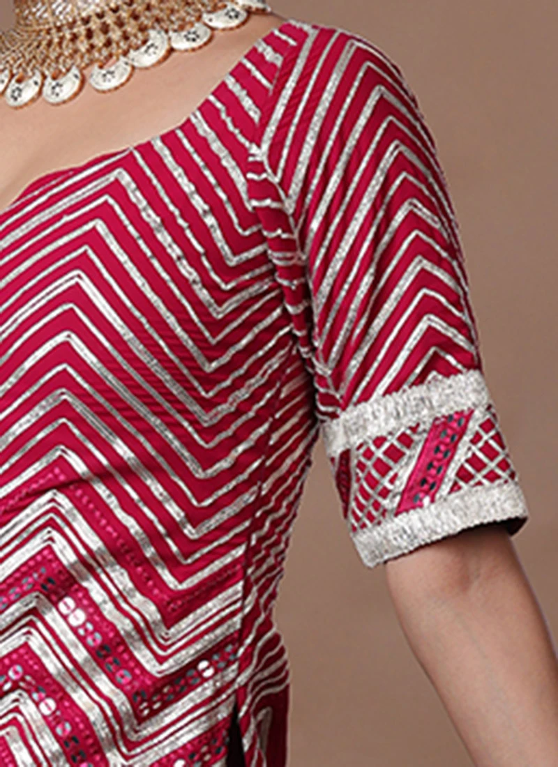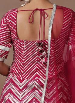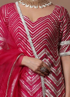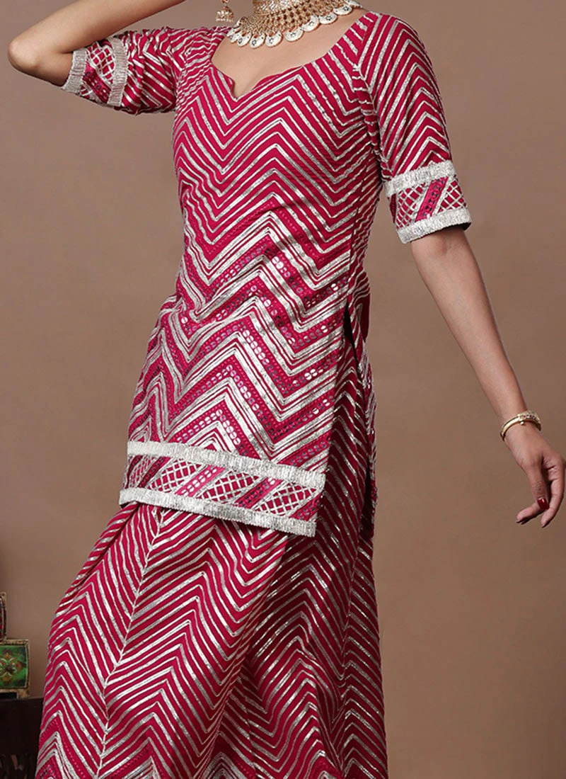Teen Girls Rani Pink Georgette Embroidered Palazzo Suit Wedding Wear