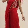 Teen Girls Red Organza Digital Printed Saree N Yellow Blouse Festive Wear