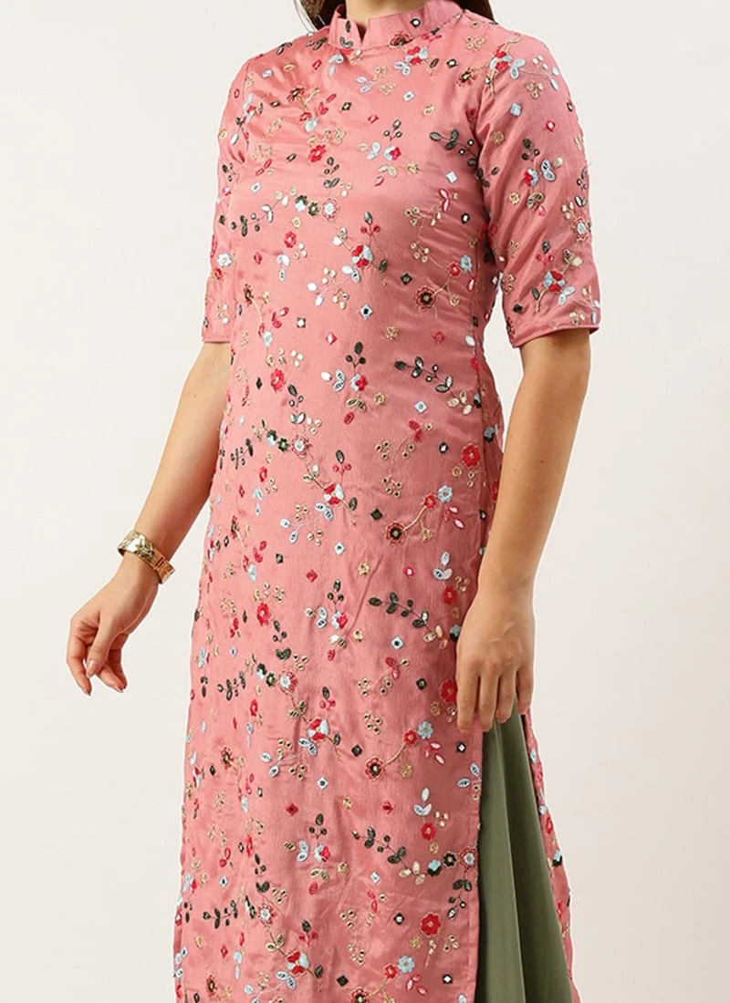 Teen Girls Rouge Pink Embroidered Collar Neck Palazzo Suit Festive Wear