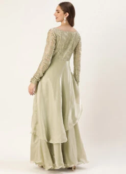 Teen Girls Silver Embroidered Jimmy Choo Layered Gown Party Wear