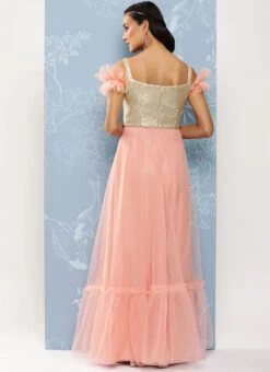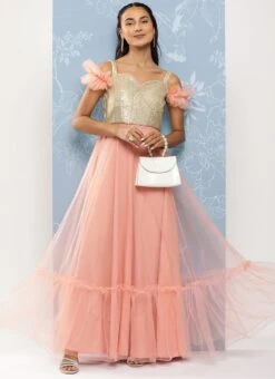Teen Girls Silver Embroidered N Pink Corset Style Gown Party Wear