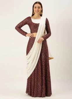 Teen Girls White N Maroon Embroidered Jacket Lehenga Set After Six Wear