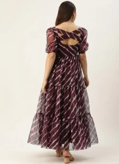 Teen Girls Wine Digital Printed Organza Dress Party Wear