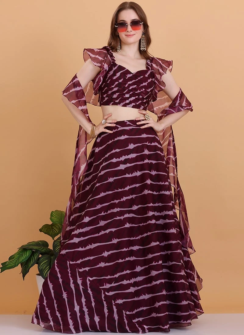 Teen Girls Wine Digital Printed Organza Lehenga Set Party Wear