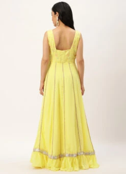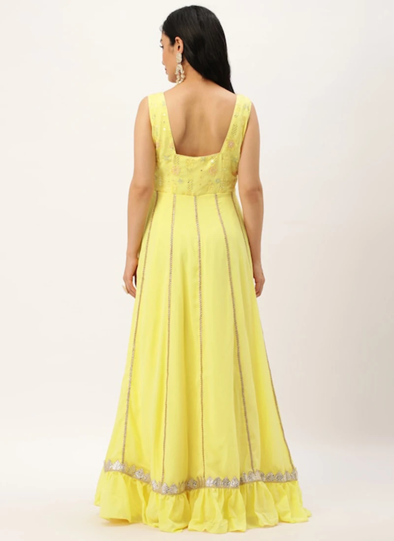 Teen Girls Yellow Embroidered Georgette Kali Gown Festive Wear