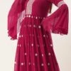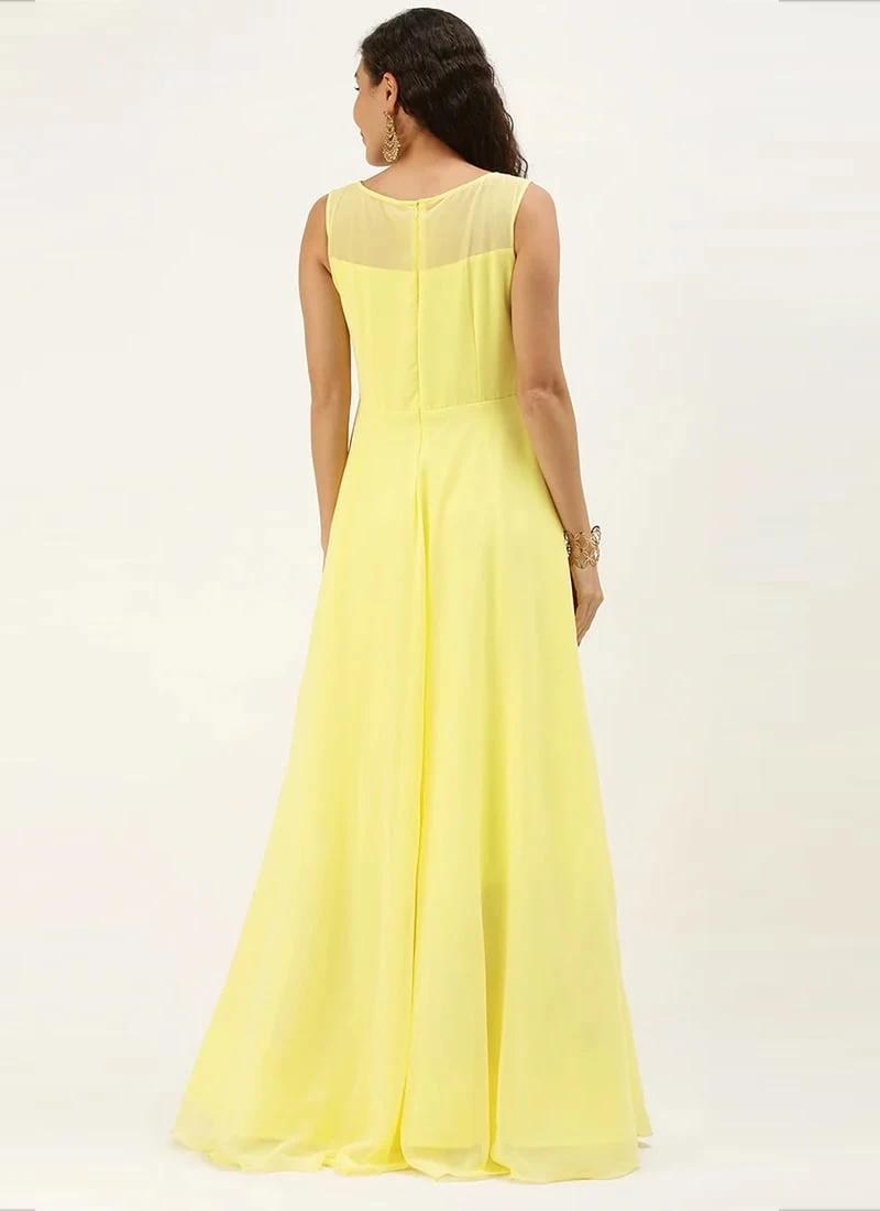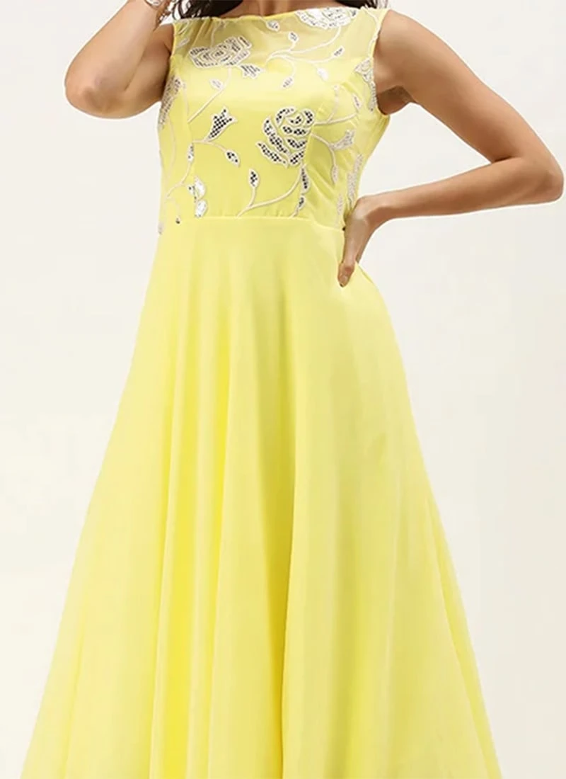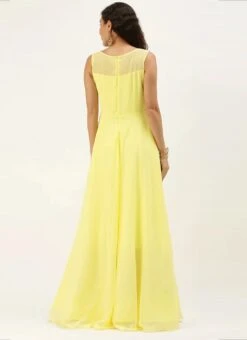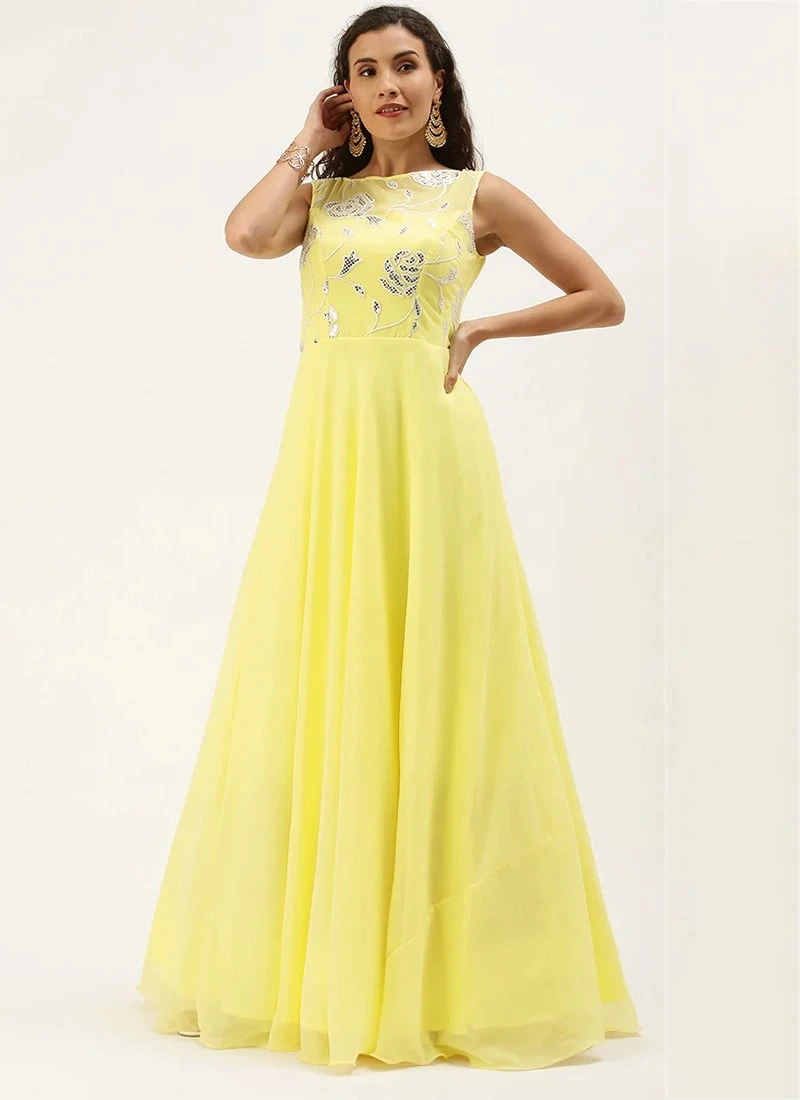 Teen Girls Yellow Georgette Embroidered Boat Neck Gown Party Wear