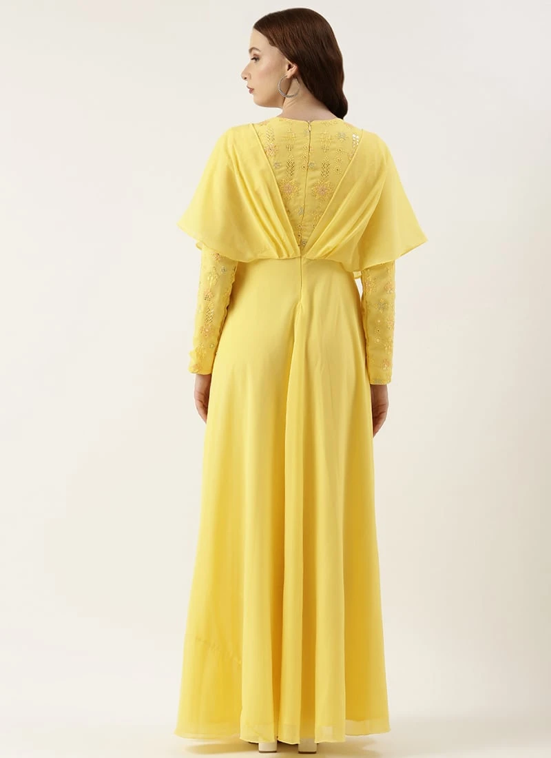 Teen Girls Yellow Georgette Embroidered Gown Festive Wear