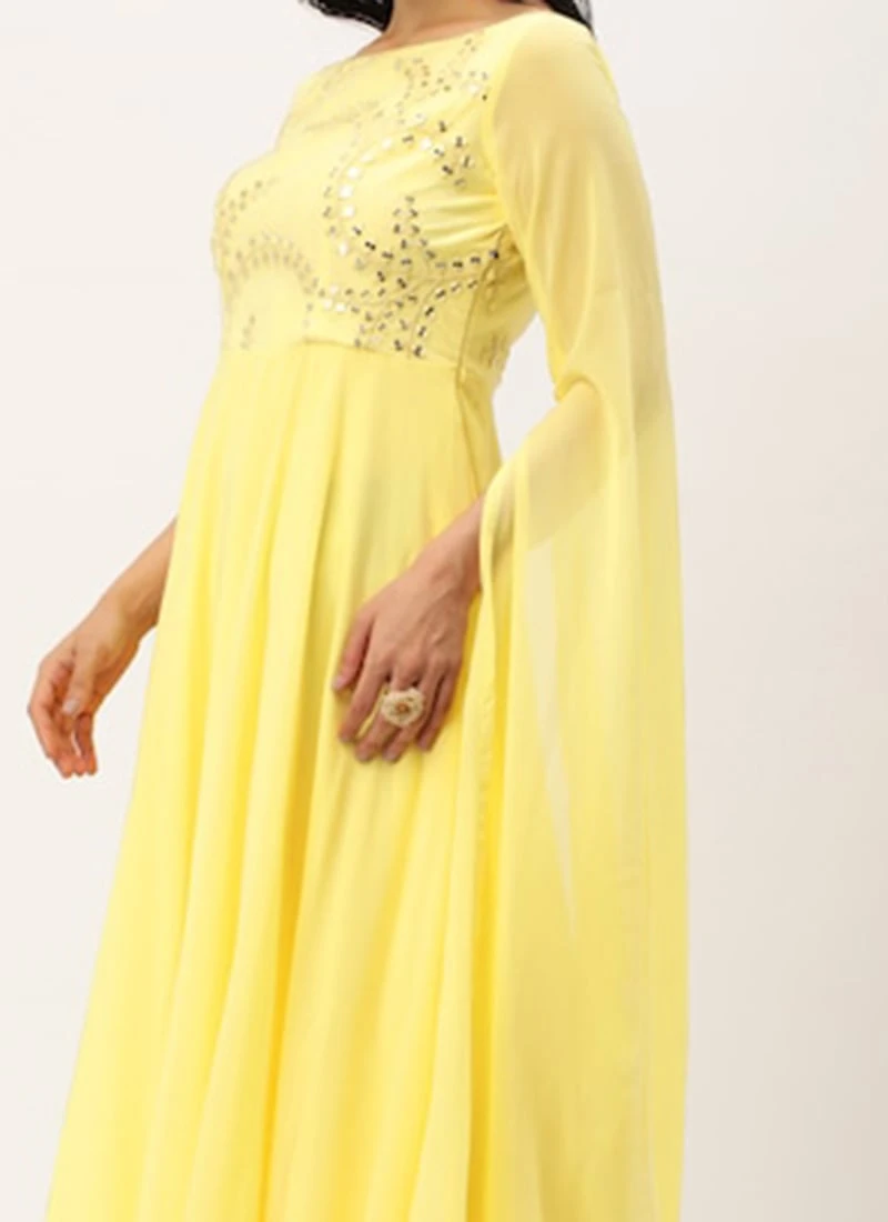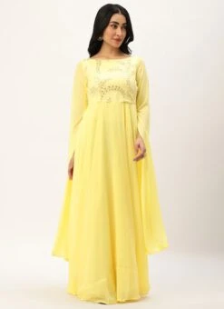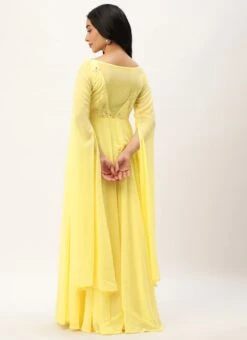 Teen Girls Yellow Net Embroidered Indowestern Set Party Wear